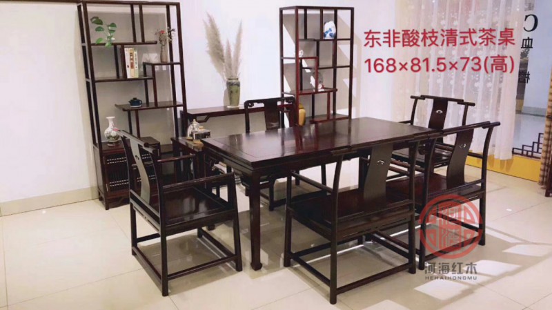 休闲系列酸枝通板画案茶桌与博古架